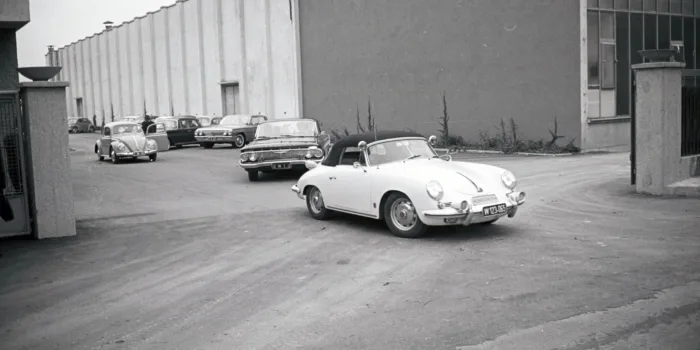 Die leider unbekannten Damen und Herren auf dem Bild scheinen recht fröhlich zu sein. Hurra, endlich eine Baustelle. Im Hintergrund einsam der Lastwagen der Stunde.