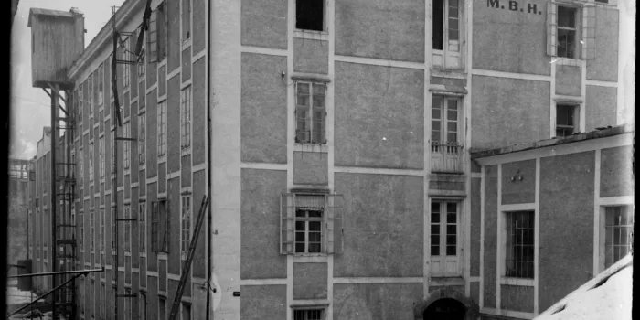 Was hat es mit den beiden Baracken neben dem Sillkanal auf sich? Die Fahne dazwischen deutet jedenfalls auf die Zeit 1938 bis 45. Die Umfahrungsbahn sieht man aber noch nicht.