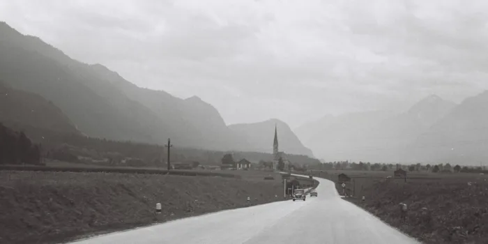 Mit dieser Aufnahme reisen wir zurück in den Frühsommer 1948. Wir sehen – große Überraschung – einen Omnibus der Innsbrucker Verkehrsbetriebe. Die Szenerie wirkt aber, zumindest auf den ersten Blick, nicht sonderlich vertraut. Gut, dass sich zumindest das Linienschild entziffern lässt, denn so fällt die Antwort auf unsere Frage nach dem Aufnahmeort dann doch nicht mehr allzu schwer…