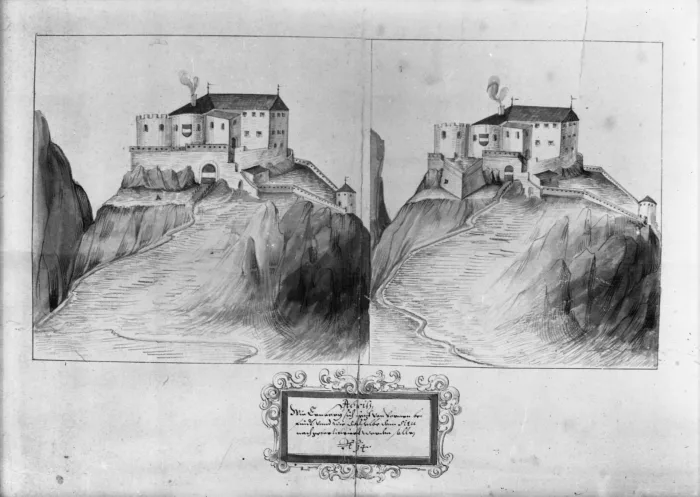 Durch die Wirrnisse bzw. militärischen Konflikte im Zuge der konfessionellen Gegensätze zwischen Katholiken und Protestanten, musste die alte Burg bereits im 16. Jahrhundert laufend modifiziert. Große Umbaumaßnahmen wurden erst zwischen 1607 und 1609 vorgenommen, am Vorabend des Dreißigjährigen Krieges. Unser Stich im Titelbild legt Zeugnis über diese Baumaßnahmen ab. In der kleinen Inschrift darunter wird erwähnt: „Abriss wie Ernberg sich ietzt von vornen befindt und wie dasselbe dem situ nach gerfortifiziert werden solle.“