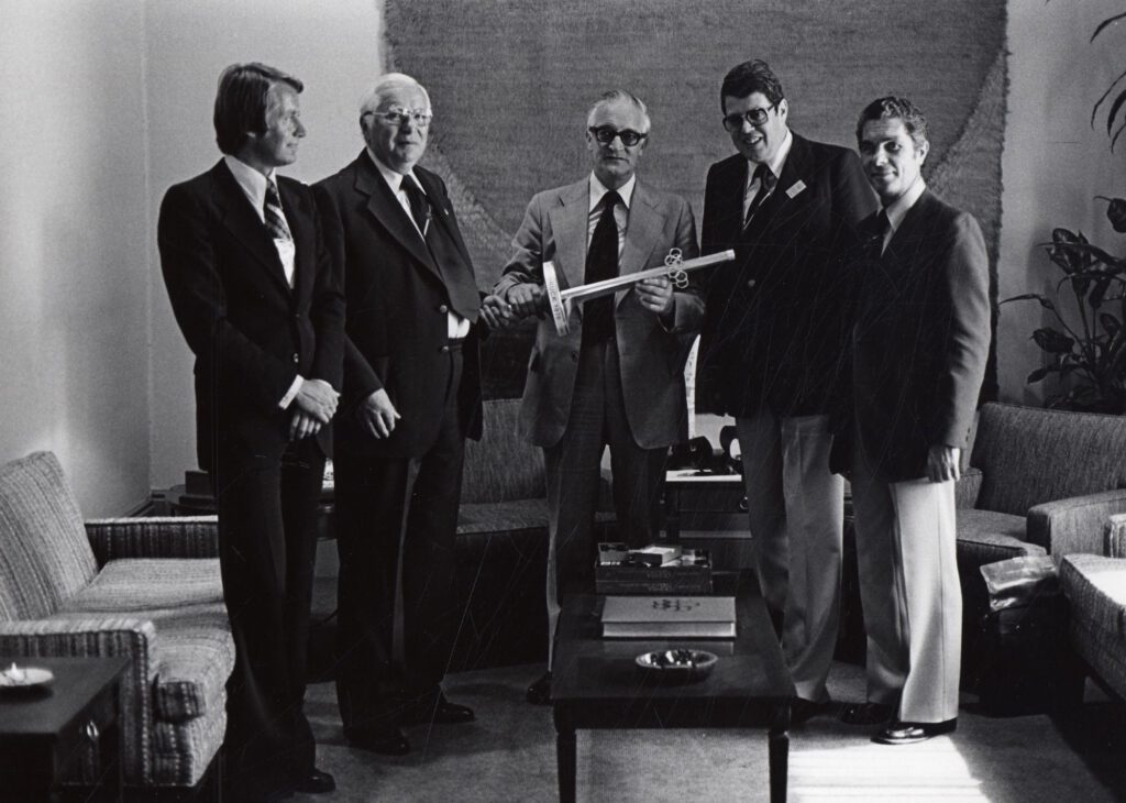Betrachtet man das Foto genau, dann ist am Sakko ein Abzeichen der Olympischen Spiele zu sehen.