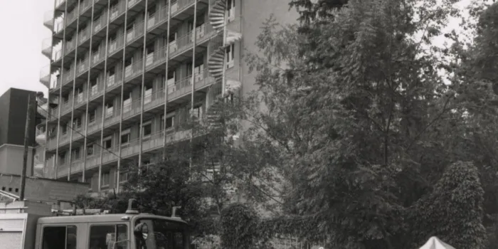 …. fragen wir euch, liebe Rätselfreunde. Wo stand der Fotograf Kurt Reuter hier, als er im März 1961 dieses Bild aufnahm? Welche Gebäude kann man erkennen?