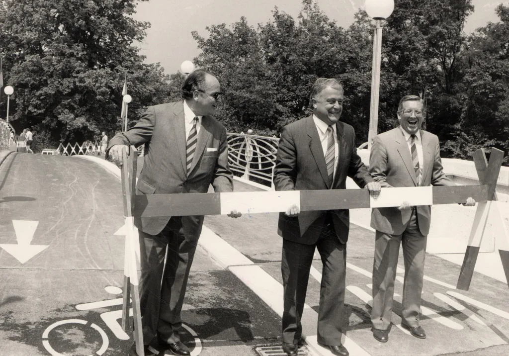 Dieser Beitrag bildet einen Folgebeitrag zu Earth Day im Jahre 1990. Dort wird gerade ein Baum gepflanzt – und im Hintergrund ist ein ganz frischer, gerade einmal drei Jahre alter Sillsteg zu sehen. Die Eröffnung des Sillstegs erfolgte im Juli des Jahres 1987. Der brandneue Sillsteg – ein umweltfreundliches Bauwerk – wie man in den Innsbrucker Stadtnachrichten lesen konnte, wurde als Verbindungsstück für Fußgänger und Radfahrer zwischen dem östlichen Ausläufer der Museumstraße und dem Stadtpark Rapoldi seinem Bestimmungszweck übergeben. Es handelte sich um das erste Brückenprojekt der Stadt Innsbruck, bei dem ein Architekt, namentlich Dipl-Ing. Ekkehard Hörmann, zu Rate gezogen wurde, um nicht nur eine zweckmäßige Brücke zu bauen, sondern auch eine gelungene Optik zu erzielen. Denn die Flussufer wurden als Orte mit besonderem Potential erkannt, um dort den städtischen Lebensraum als Ort zum Verweilen zu gestalten.